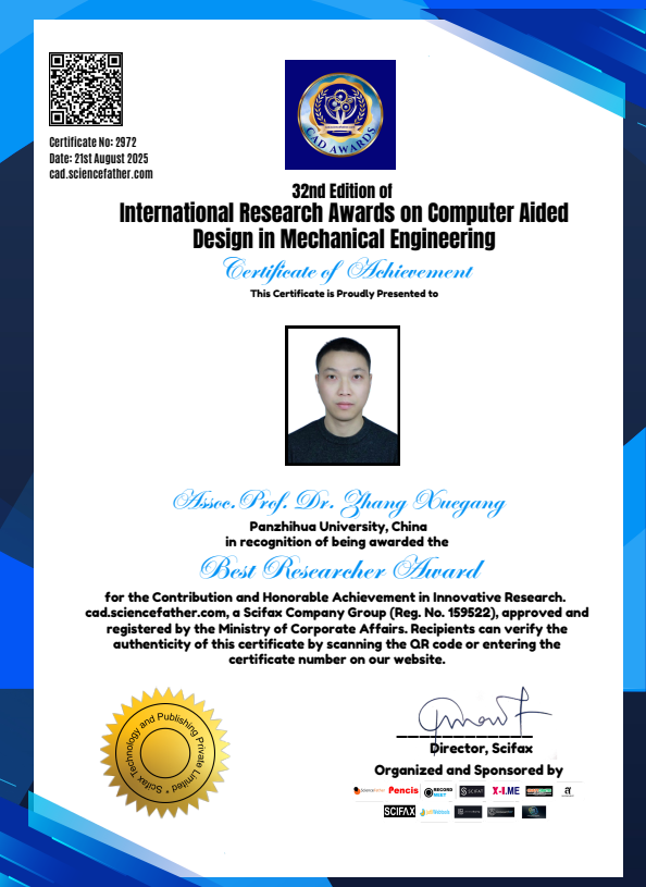 2025年8月21日,国际学术组织ScienceFather正式授予公司304永利集团张学刚博士第32届计算机辅助设计“最佳研究者奖(BEST RESEARCHER AWARD)”,以表彰他在“计算机辅助设计与制造”领域取得的突破性贡献。该奖项实现公司在国际学术个人奖项上零的突破。本届获奖者包括来自清华大学、上海交通大学、加州大学洛杉矶分校、普渡大学、香港理工大学等多所世界知名高校及科研机构的杰出研究人员。