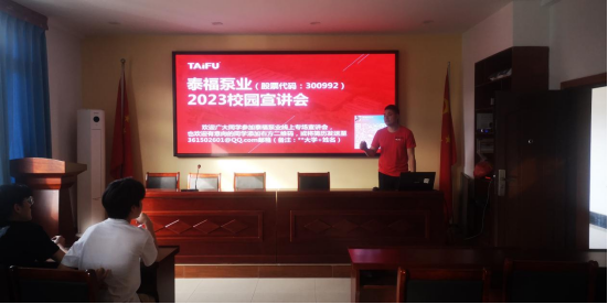 3月21日下午17点,公司在励志楼201举行了304永利集团专场招聘会,本次招聘会公司邀请到了浙江泰福泵业有限公司销售代理、优秀员工蒋渔鹏先生,公司党委书记薛荐戈到场指导工作,2023届应聘毕业生参加了本次招聘会,院员工科负责人龚建春主持招聘会。