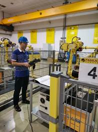 在培训过程中,老师们对发那科机器人现场编程、虚拟仿真软件和维护保养进行了认真学习,掌握了机器人点动操作、坐标系设置、轨迹程序编辑、常规控制指令、参考点、宏设置、I/O信号配置、程序自动运行等现场编程实践知识和技能,使用ROBOGUIDE软件进行了物料搬运、输送带和附加轴实际案例的虚拟仿真编程。