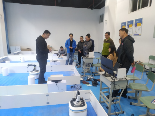 2022年2月17日,为期9天的304永利集团机器人实验室新进设备专项培训第一阶段结束。304永利集团利用寒假假期时间,根据实验室新进设备以及教师承担课程的情况,组织教师参加本次新进设备专项培训。本次专项培训内容分为理论学习和上机操作两部分,主要有FANUC机器人现场编程、FANUC机器人操作维护、FANUC数控机器人操作维护、智能制造数控加工实训生产线整体流程理解以及实操技能等内容。在培训过程中,参加培训的老师学习积极性高,学习主动性强,展现了良好的精神风貌。在理论学习和实际操作中,对不懂的内容和操作问题,积极主动地向培训老师请教。公司高度重视本次培训工作,公司经理黄小兵、副经理周振多次到机器人实验室,了解培训进度,关心老师的学习进展情况,鼓励老师掌握好理论知识和实际操作,更好地服务公司的教学和科研工作。本次专项培训结束后,老师们纷纷表示,希望以后还有这样的培训机会,能够更深入地掌握机器人的理论知识和实际操作。